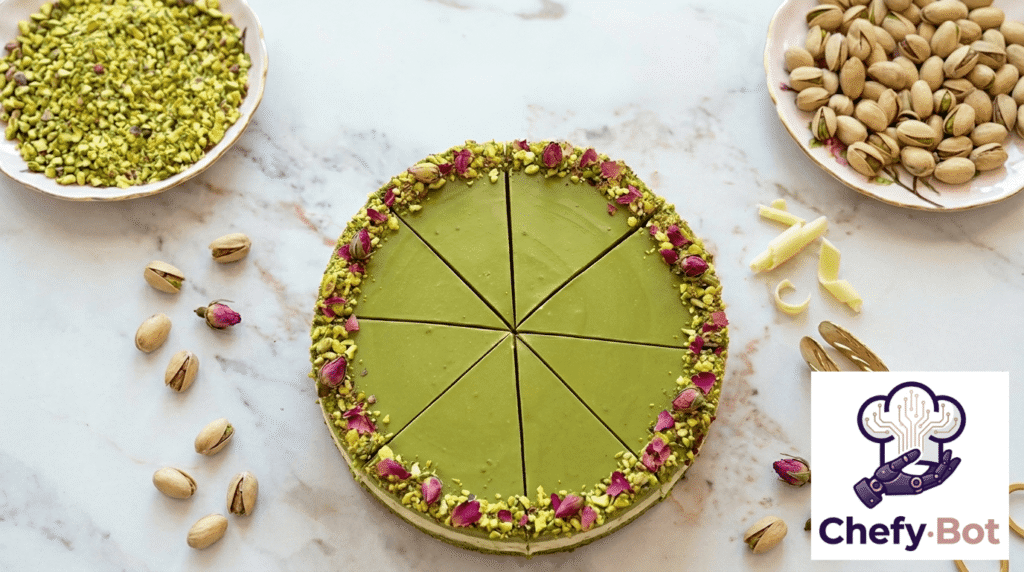 تشيز كيك الفستق الملكي بالشوكولاتة البيضاء